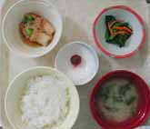 11時30分 昼食 全粥、モヤシ炒め、 たら(野菜あんかけ) みそ汁(ワカメ)、梅干、牛乳 14時10分 検温(36度8分) 16時10分 点滴 |