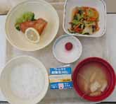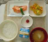11時40分 昼食 全粥、焼き魚(鮭)、かぼちゃのサラダ(人参、胡瓜) みそしる(ジャガイモ)、梅干、牛乳 13時00分 診察 14時00分 検温(36度4分) 15時30分 点滴 |