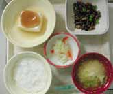 06時20分 検温 07時30分 朝食 全粥、高野豆腐、大根卸し みそ汁、(白菜)、ゴマ塩 09時30分 点滴 10時20分 血圧測定 |