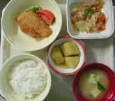 11時45分 昼食 全粥、ほっけのフライ、野菜炒め みそ汁(油揚げ、もやし)、梅干、牛乳 14時00分 検温 36度8分 16時00分 点滴 (午後の点滴は100mlが1本) |